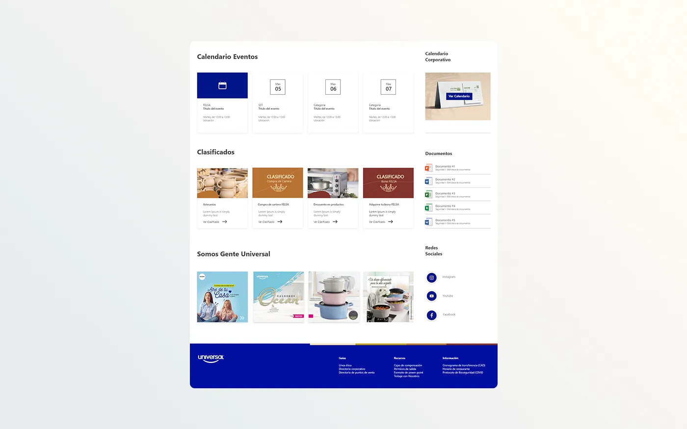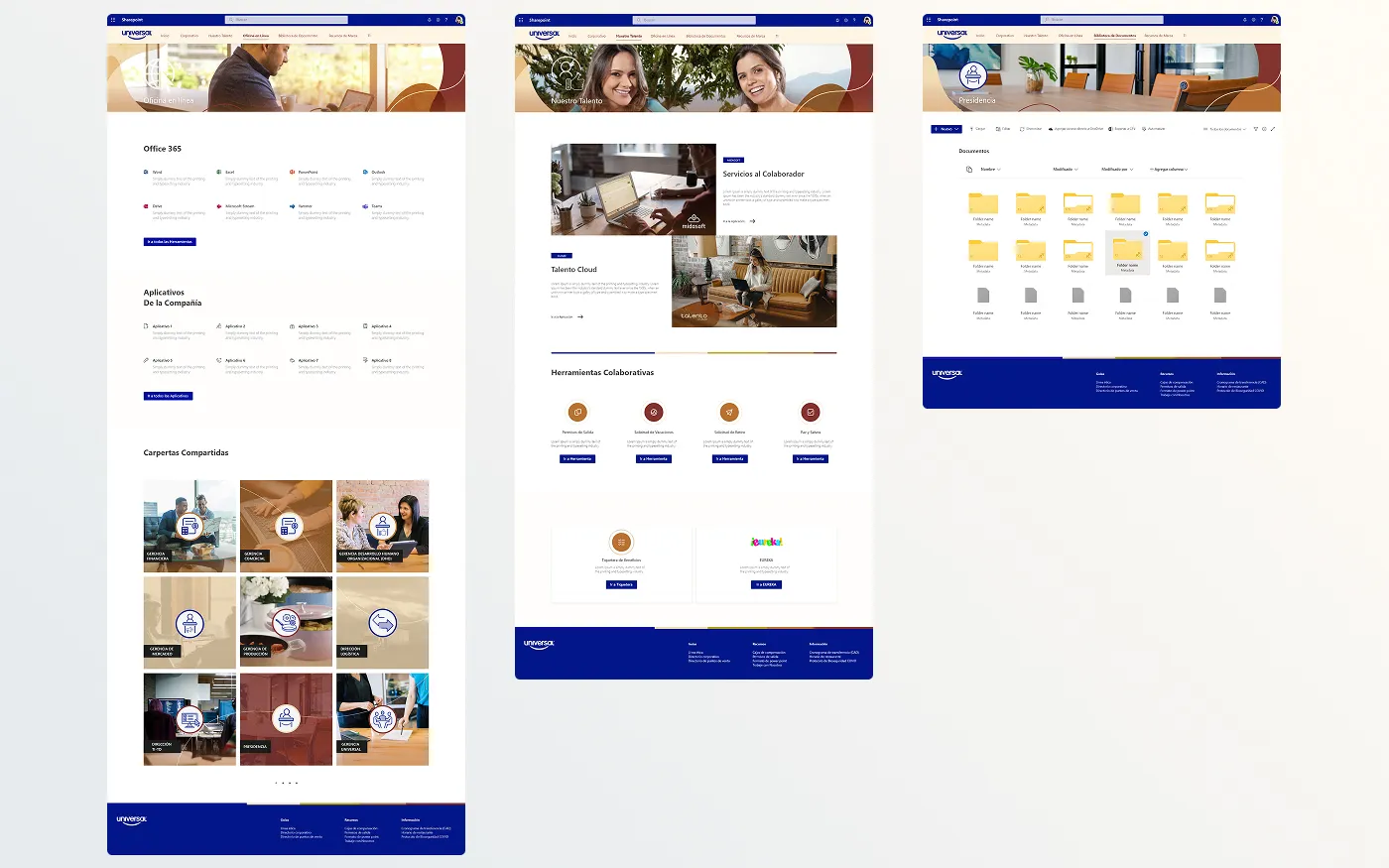 Este proyecto representa la capacidad técnica para intervenir ecosistemas corporativos de gran escala. El desafío consistió en centralizar herramientas y procesos para los colaboradores de Universal, aplicando una metodología de investigación basada en el análisis de tareas lógicas. Se ejecutó la estructura visual sobre SharePoint Online, integrando la seguridad nativa de Microsoft. Diseñamos flujos de trabajo optimizados que permiten el acceso a información crítica y procesos de negocio desde cualquier ubicación, garantizando la integridad técnica de la red.